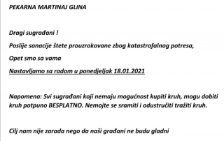 Hvala Pekarni Martinaj na velikodušnoj ponudi za besplatan kruh svima kojima je potreban!